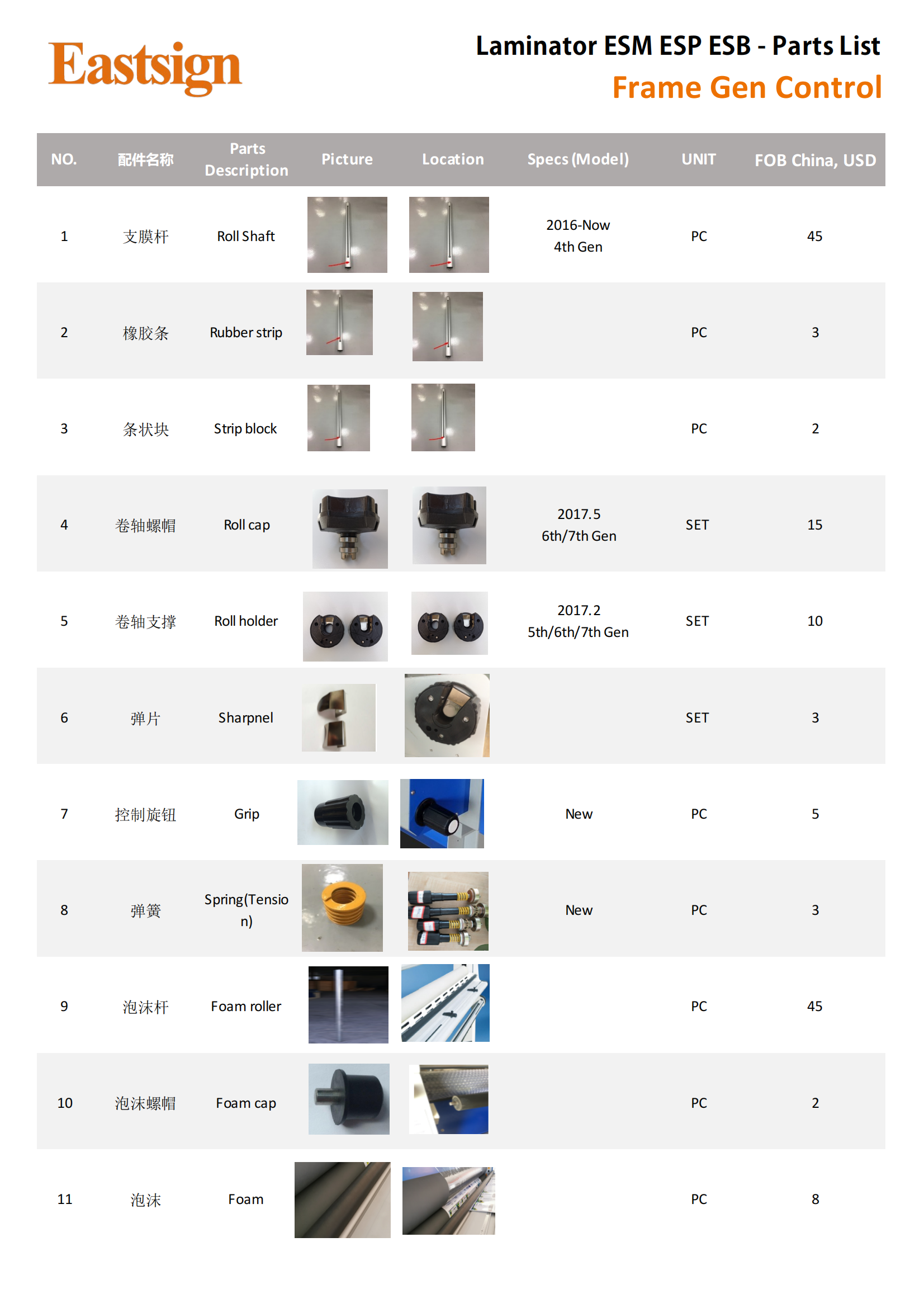 Laminator - ESM ESP ESB Parts List